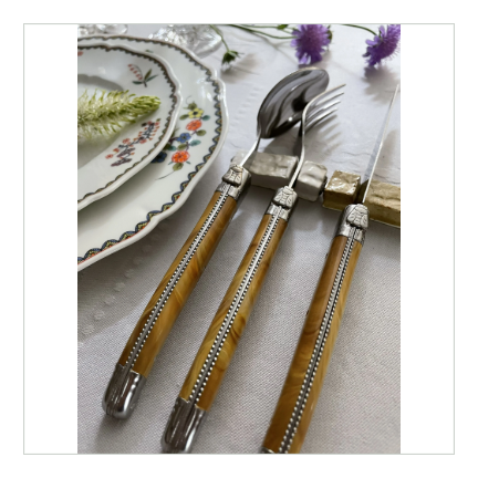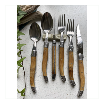 6本セットLaguiole オリーブマーブル色ナイフ+フォーク+スプーン2客セット ラギオールJean Neron社