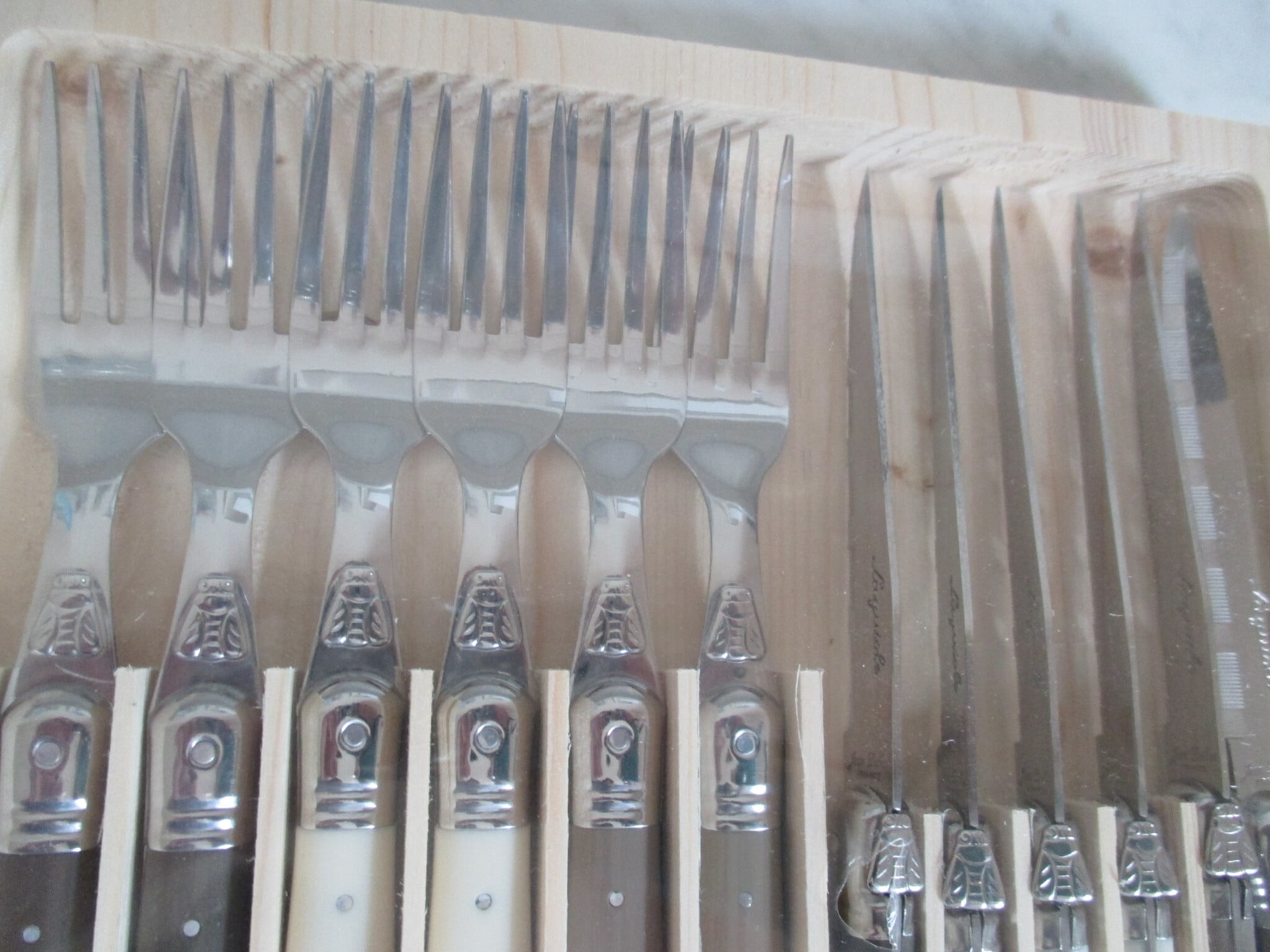 日本国内発送 木箱付きLaguioleラギオール1,5mm幅ナイフ6本+フォーク6本